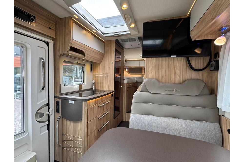 Een prachtige camper, deze Hymer MLT 580 Edition One camper uit Maart 2019 met de mercedes sprinter 163 pk 9-traps automaat met nog maar 24103KM . Deze camper is afkomstig van eerste eigenaar Complete documentatie aanwezig en verkeerd in nieuwstaat . Deze camper is uitgevoerd met het silverline pakket . Het betreft een ruime camper met en zeer gewilde indeling. De camper heeft een ruime rondzit dmv draaistoelen, een Ruime keuken met lades met en mooie werkruimte en grote koelkast met vriezer , verder is er ook en royale douche/toilet ruimte aanwezig, achterin de camper bevinden twee ruime enkele bedden met en ruime garage daaronder , ook is de voorzit om te bouwen naar en slaap plaats . Uiteraard is deze camper van alle gemakken voorzien, zoals en Motor Airco , Truma dak airco , Groot beeld navigatie , Grote garage , Achteruitrijcamera , Tv , Panoramisch dak , Hordeur, Luxe interieur , Luifel , Plisse verduistering , Zonnepanelen en nog veel meer.