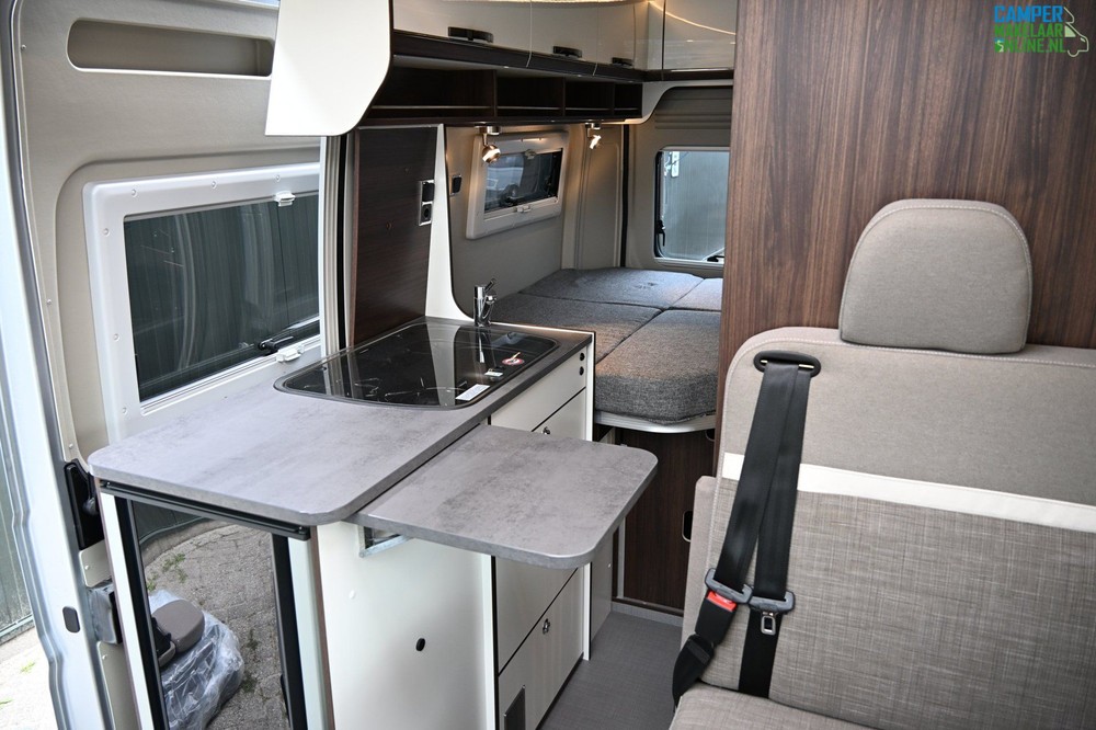 Met de Summit presenteerde PÖSSL in 2016 één van de eerste buscampers met een zwenkwand in de natte cel waardoor in 1 handomdraai de toilet ruimte afgescheiden wordt en er een douche ruimte ontstaat. De Summit Prime is standaard uitgerust is met een Skyroof. Keuken met innovatieve koelkast, gemakkelijk te openen vanuit binnen en vanuit buiten. Er zijn 4 zitplaatsen met een mogelijkheid voor een 5e zitplaats en er zijn 3 slaapplaatsen (dwarsbed en zithoek welke om te bouwen is). Deze campernus heeft een lage KM stand en verkeert in nieuwstaat. Te bezichtigen bij Karsten Campermakelaardij in Oosterblokker. WIJ RUILEN NIET IN.