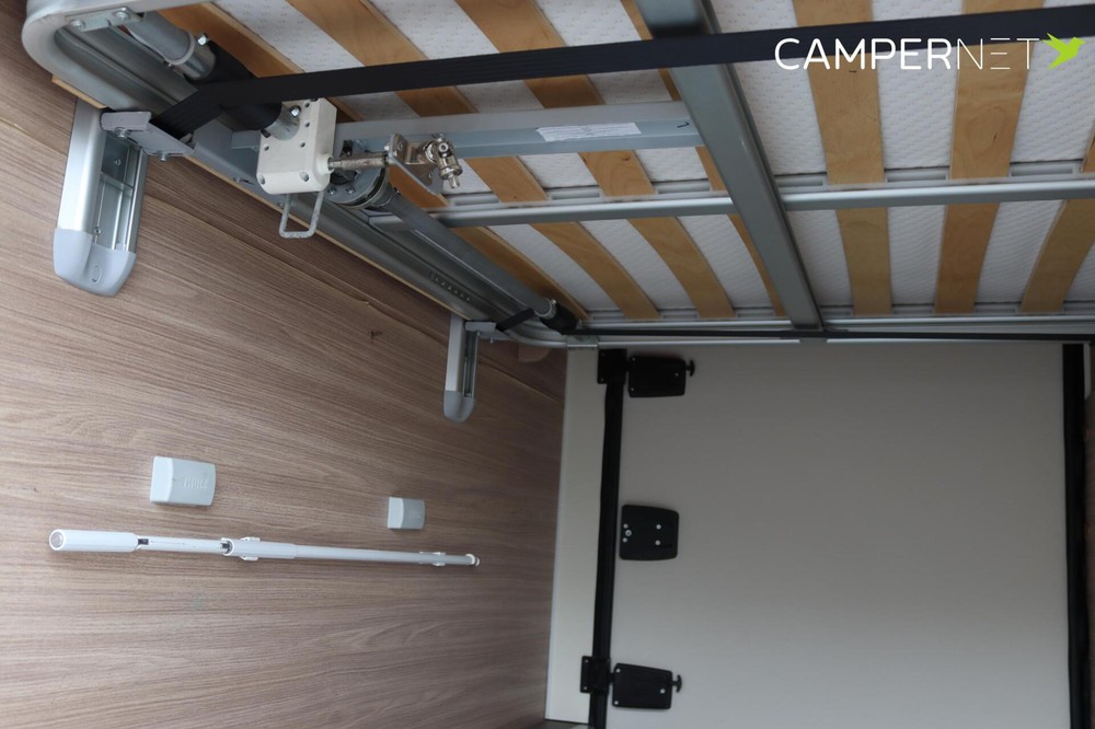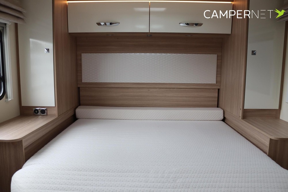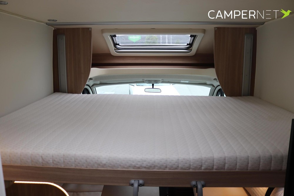 Deze ruime en comfortabele camper is voorzien van een face-to-face zitgroep, een queensbed achterin en een elektrisch hefbed voor extra slaapplaatsen.