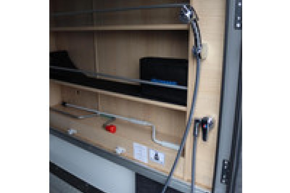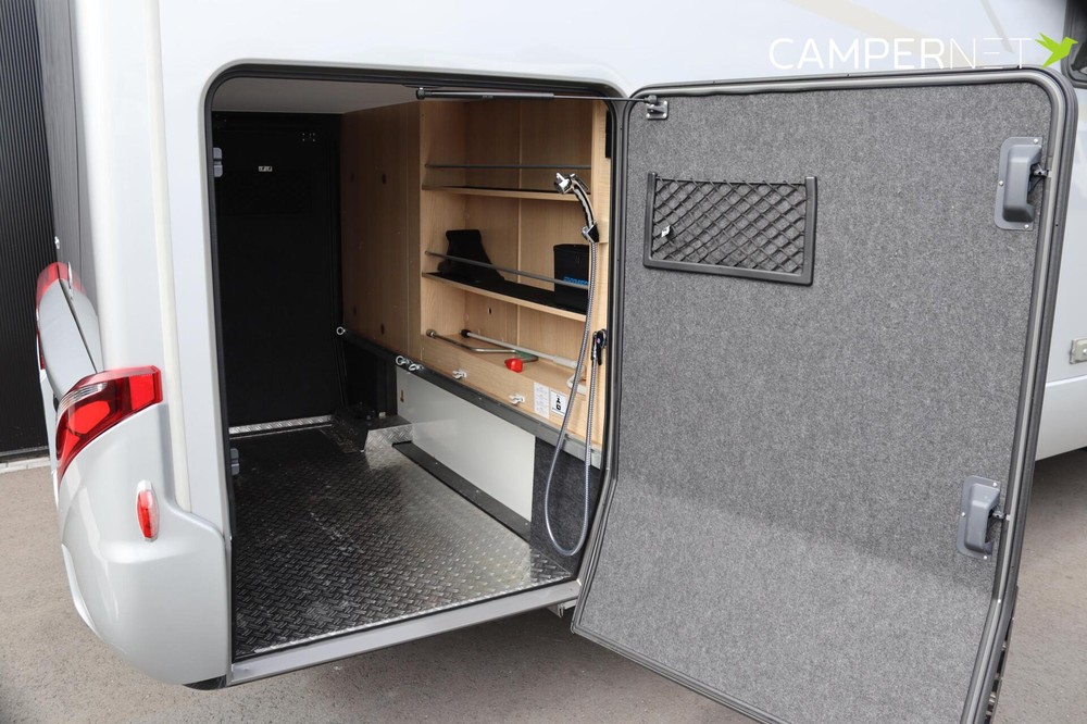 Luxe en praktische detailsDe Hymer BMC-T 580 biedt een ruime zithoek met een L-zit die ontstaat door de draaibare voorstoelen. Het elegante Grand Oak meubeldecor in combinatie met de luxe Milano bekleding zorgt voor een verfijnde uitstraling. Dankzij de dubbele bodem, die verwarmd is en extra opbergruimte biedt, kun je jouw spullen veilig en droog opbergen. De 180 liter schoonwatertank en de 150 liter vuilwatertank zijn weggewerkt in de dubbele bodem, terwijl je vanuit de buitenkant eenvoudig toegang hebt tot de opslagruimte. De ruime garage heeft een laadhoogte van 132 cm, is aan beide zijden toegankelijk en biedt voldoende ruimte voor uw fietsen, scooter en bagage.