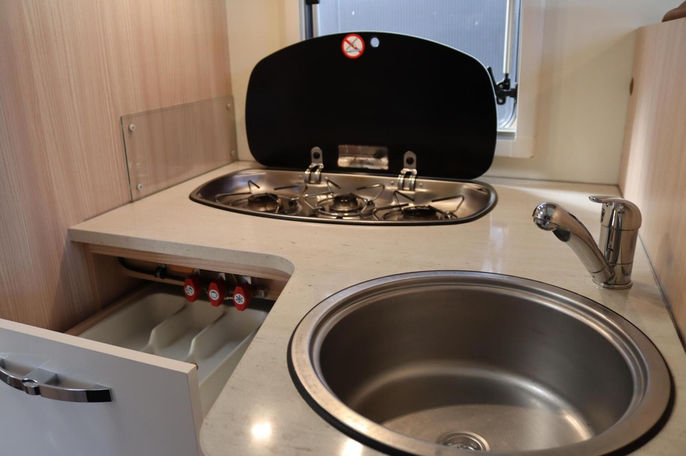 Interieur- 3-pits kookplaat met glasafdekking en RVS spoelbak