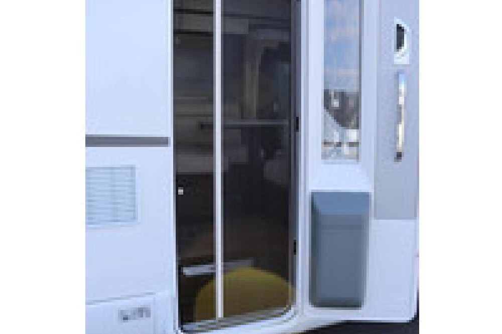 De nieuwe HYMER panorama-handmatige dakluifel, die in alle camper-modelseries wordt toegepast, scoort met nog meer hoofdruimte door zijn lagere opbouw. Door deze te integreren in het ontwerp van de woonruimte en, afhankelijk van de indeling, met extra sfeerverlichting, past hij perfect in het harmonieuze totaalbeeld van de voertuigen. Dankzij de best mogelijke bescherming tegen regen laat hij permanente ventilatie toe, maar ook schokventilatie wanneer hij wordt gekanteld. Het is ook achterwaarts compatibel met het bestaande HYMER handmatige dakluik.