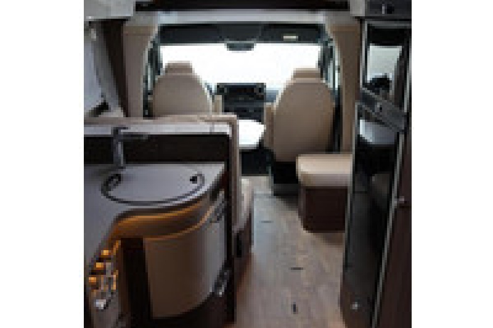 Panorama cabine met toptechnologieIn de cabine van de Hymer B-ML T 780 geniet je van een panoramisch uitzicht, zodat je niet alleen de omgeving optimaal kunt bewonderen, maar ook tijdens het rijden goed overzicht hebt op het verkeer. Het Mercedes-Benz MBUX multimedia systeem zorgt voor een soepele navigatie- en entertainmentervaring, terwijl de luxe pilotenstoelen, die volledig verstelbaar en draaibaar zijn, het comfort verhogen.