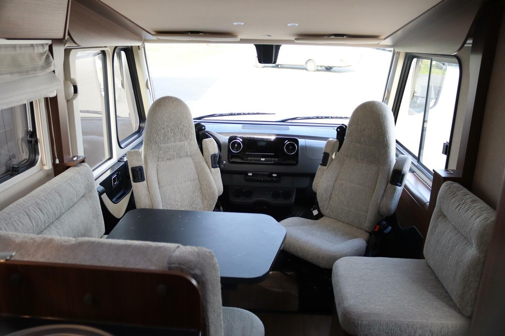Panorama cabine met toptechnologieIn de cabine van de Hymer BMC-I 600 geniet je van een panoramisch uitzicht, zodat je niet alleen de omgeving optimaal kunt bewonderen, maar ook tijdens het rijden goed overzicht hebt op het verkeer. Het Mercedes-Benz MBUX multimedia systeem zorgt voor een soepele navigatie- en entertainmentervaring, terwijl de luxe Agouti pilotenstoelen, die volledig verstelbaar en draaibaar zijn, het comfort verhogen.