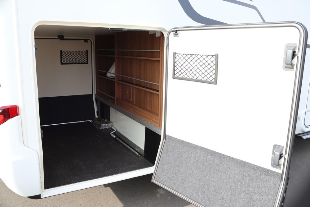 Luxe en praktische detailsDe Hymer BMC-I 600 biedt een ruime zithoek met een L-zit die ontstaat door de draaibare voorstoelen. Het elegante Noce Cognac meubeldecor in combinatie met de luxe Porto bekleding zorgt voor een verfijnde uitstraling. Dankzij de dubbele bodem, die verwarmd is en extra opbergruimte biedt, kun je jouw spullen veilig en droog opbergen. De 180 liter schoonwatertank en de 150 liter vuilwatertank zijn weggewerkt in de dubbele bodem, terwijl je vanuit de buitenkant eenvoudig toegang hebt tot de opslagruimte. De ruime garage heeft een laadhoogte van 132 cm, is aan beide zijden toegankelijk en biedt voldoende ruimte voor uw fietsen, scooter en bagage.