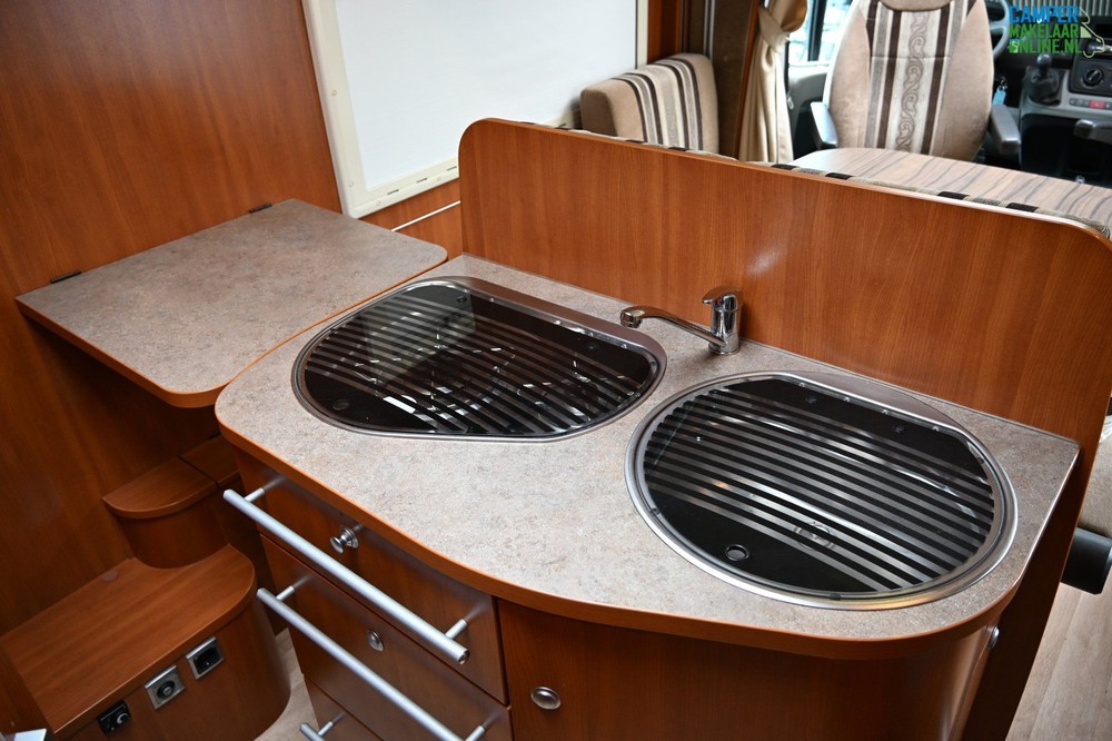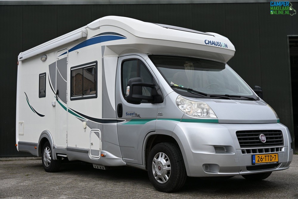 Deze nette Chausson Sweet Maxi wordt eventueel met stallingplek in Kampen in verkoopbemiddeling aangeboden bij Karsten Campermakelaardij. De camper is onder andere voorzien van een zonnepaneel, fietsendrager op de achterwand en een Maxxfan met afstandsbediening.
