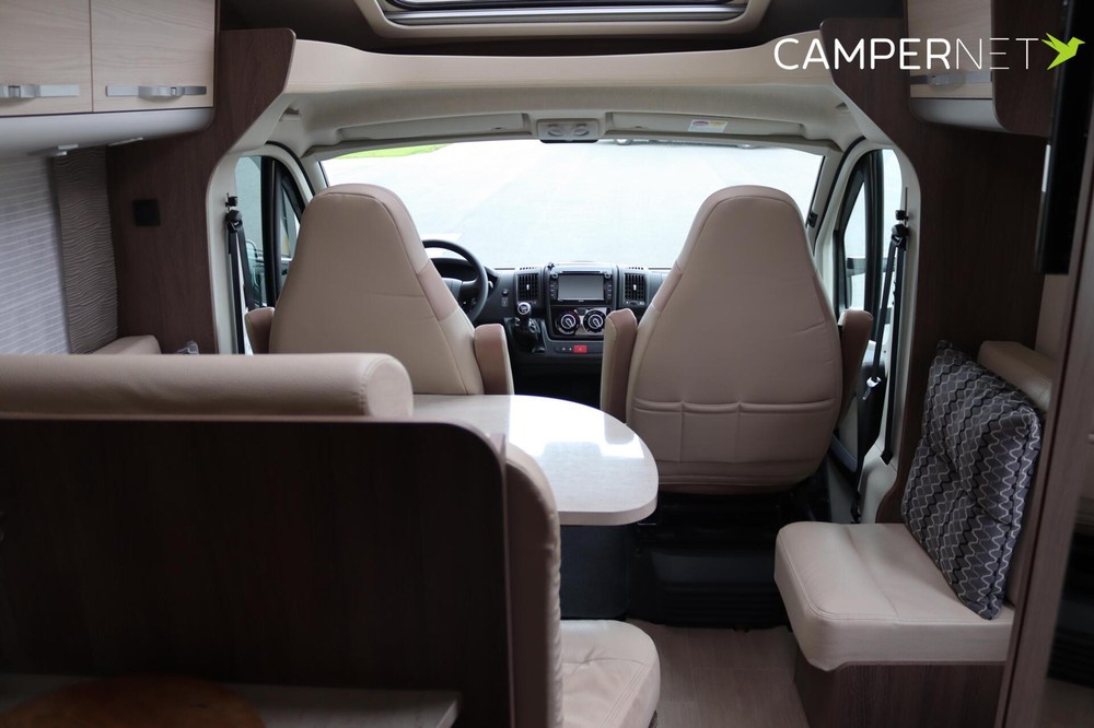 De T685 staat bekend om zijn ruime woonruimte en het populaire queensbed achterin, dat van beide kanten goed bereikbaar is. Voorin is de zithoek comfortabel en voorzien van draaibare pilootstoelen, waardoor er een gezellige eethoek ontstaat. De douche en het toilet zijn van elkaar gescheiden, wat je zelden ziet in deze lengteklasse.