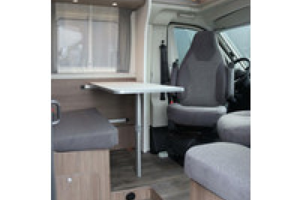 Leefruimte en zithoekDoor de bestuurders- en bijrijdersstoel handig te draaien, verander je het woongedeelte in een handomdraai in een uitnodigende