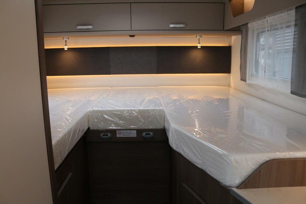 enkele bedden achterin biedt de Carado T338 flexibele slaapmogelijkheden - afzonderlijk of samengevoegd - voor een goede nachtrust tijdens het reizen.