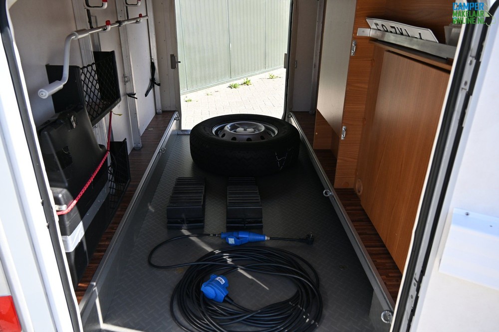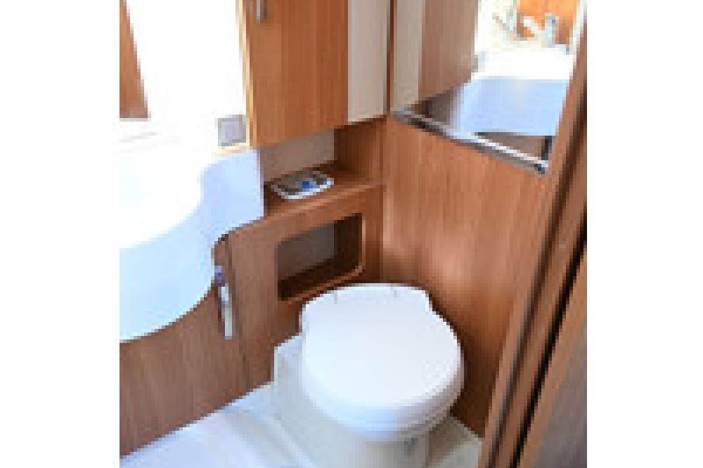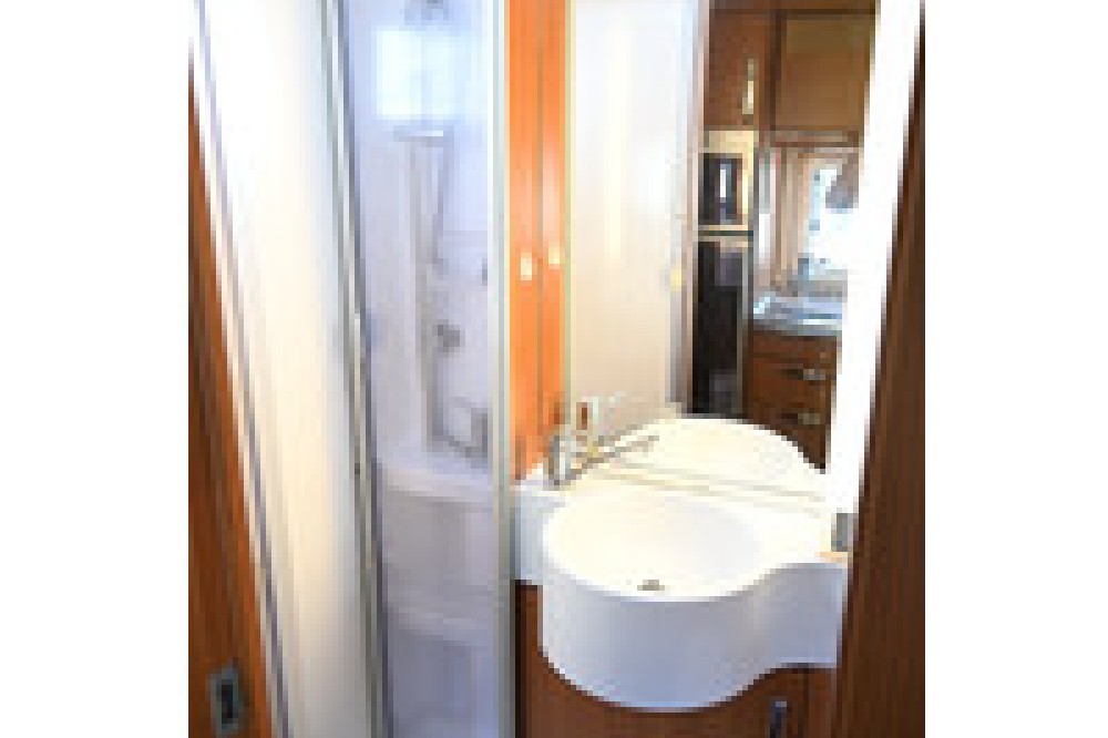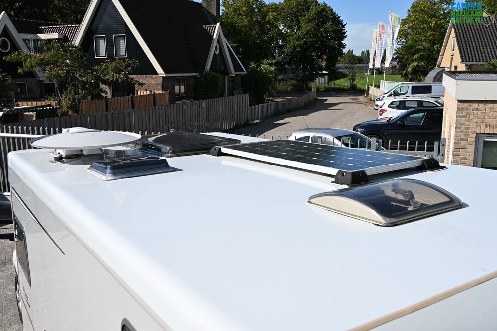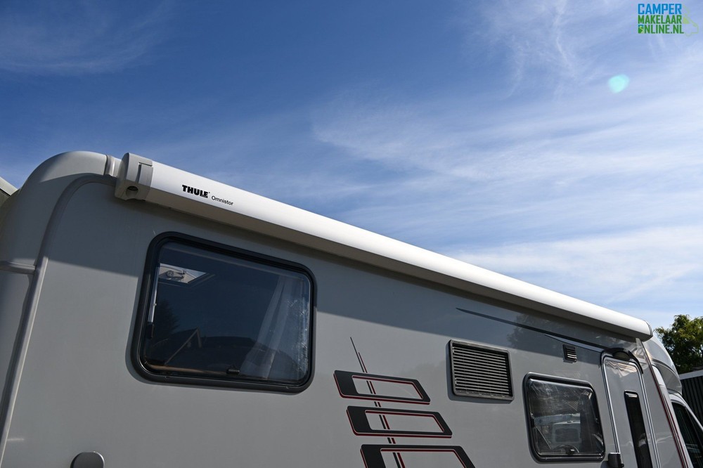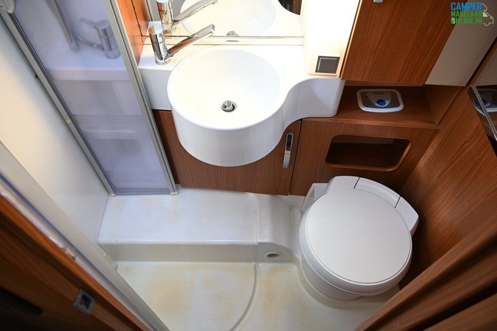 De badkamer is voorzien van een toilet, wastafel en een afsluitbare douche. Verder is de camper o.a. voorzien van een cassetteluifel(2023), fietsendrager op het chassis voor 2 fietsen en een trekhaak en zonnepaneel. Tevens is er bij de camper een set winterbanden en sneeuwkettingen aanwezig.