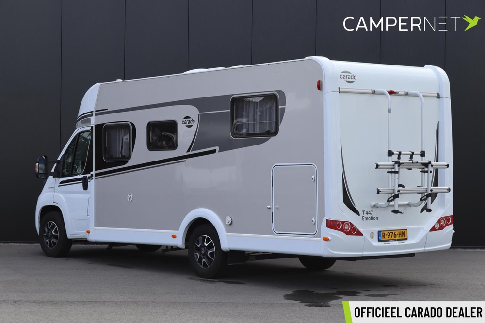 Carado T447 2.3 Multijet 140pk | Gescheiden douche | Thule fietsendrager | Lengtebedden | Bearlock | Zonnepaneel |