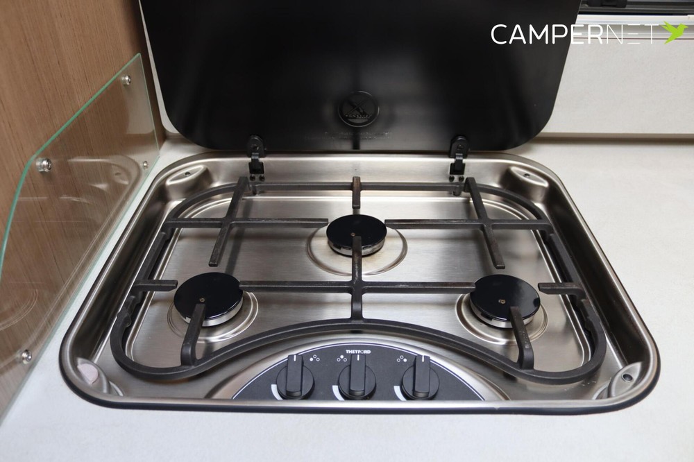 Interieur- 3-pits kookplaat met glasafdekking en RVS spoelbak