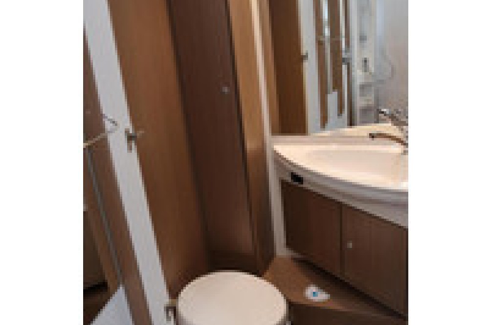 Doordachte badkamerDankzij de praktische tussendeur naar het woongedeelte is de