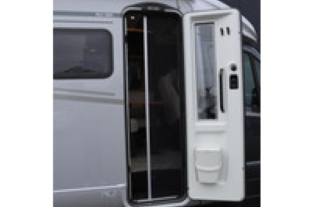 Comfort ingangsdeur met raam, verduisteringsrolgordijn, geïntegreerde afvalemmer en dubbel sluitsysteem
