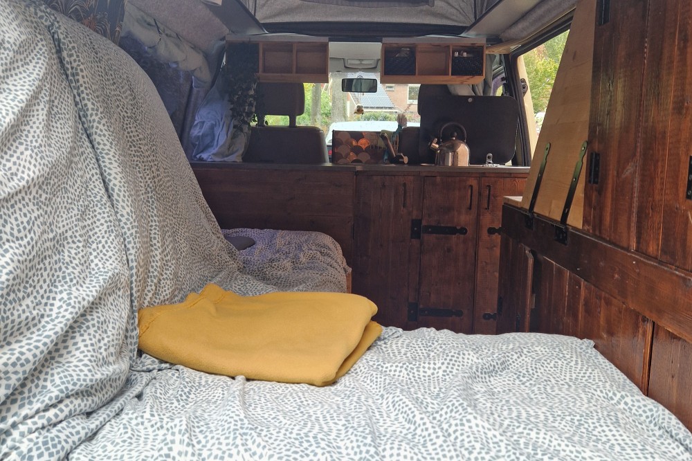 Bus Bartje is een heerlijke camper: praktisch ingedeeld, verrassend ruim van binnen en past gewoon in een parkeervak. Perfect voor stellen of solo-avonturiers die op zoek zijn naar een huisje op wielen.
