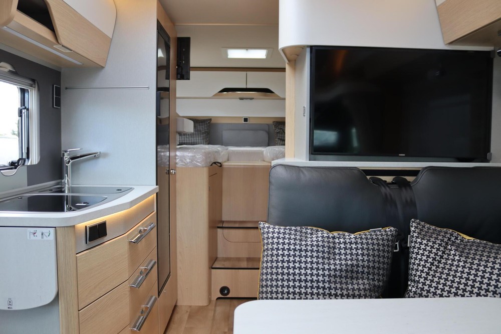 Lichte, stabiele voertuigopbouw met extra veiligheid en comfort – dat is het resultaat van de succesvolle samenwerking tussen Mercedes-Benz en HYMER. De HYMER B-klasse ModernComfort T is de eerste half-integraal wereldwijd met de combinatie van het nieuwe Mercedes-Benz-Sprinter-motorrijtuig en het door HYMER zelf ontwikkelde en bekroonde SLC-chassis. Door de uiterst lichte en stabiele opbouw evenals de extra veiligheid en het rijcomfort bent u met deze sportief-elegante begeleider op elke reis altijd een etappe vooruit.