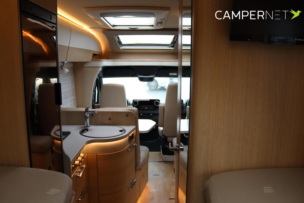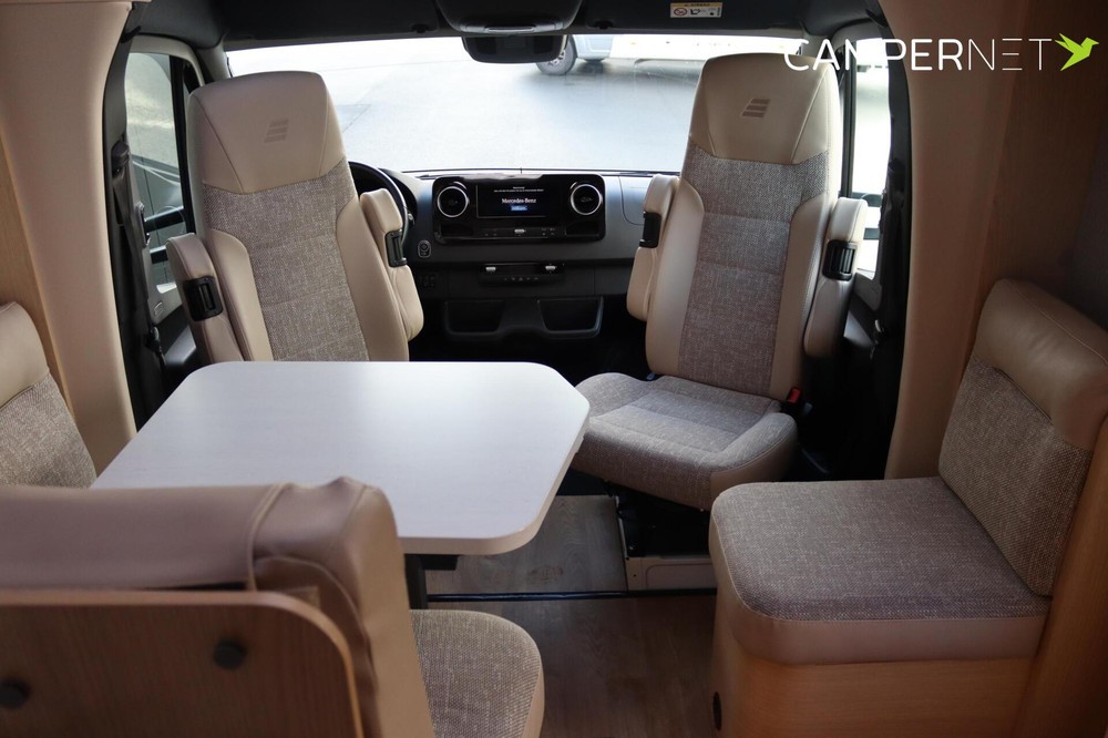 Panorama cabine met toptechnologieIn de cabine van de Hymer BMC-T 600 geniet je van een panoramisch uitzicht, zodat je niet alleen de omgeving optimaal kunt bewonderen, maar ook tijdens het rijden goed overzicht hebt op het verkeer. Het Mercedes-Benz MBUX multimedia systeem zorgt voor een soepele navigatie- en entertainmentervaring, terwijl de luxe pilotenstoelen, die verstelbaar en draaibaar zijn, het comfort verhogen.