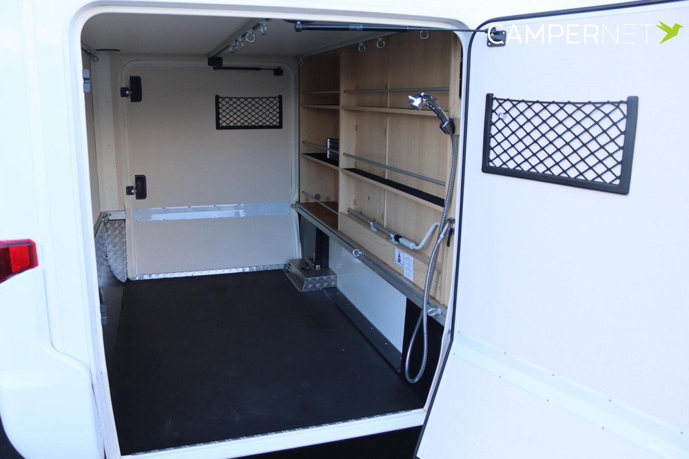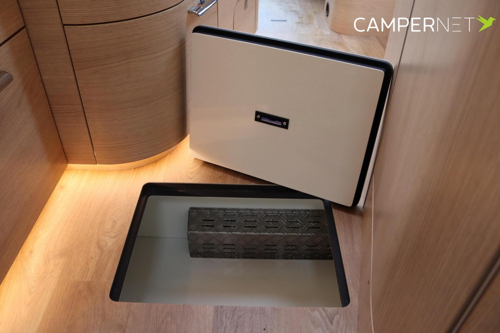 Luxe en praktische detailsDe Hymer BMC-T 600 biedt een ruime zithoek met een L-zit die ontstaat door de draaibare voorstoelen. Het elegante Grand Oak meubeldecor in combinatie met de luxe Creola bekleding zorgt voor een verfijnde uitstraling. Dankzij de dubbele bodem, die verwarmd is en extra opbergruimte biedt, kun je jouw spullen veilig en droog opbergen. De 180 liter schoonwatertank en de 150 liter vuilwatertank zijn weggewerkt in de dubbele bodem, terwijl je vanuit de buitenkant eenvoudig toegang hebt tot de opslagruimte. De ruime garage heeft een laadhoogte van 132 cm, is aan beide zijden toegankelijk en biedt voldoende ruimte voor uw fietsen, scooter en bagage.