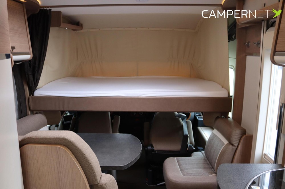 Deze luxe integraalcamper heeft de kwaliteit die u gewend bent van Carthago. De strakke langskeuken is voorzien van grote lades, drie gaspitten en slimme afzetmogelijkheden. De koelkast van 133 liter staat ernaast. In de L-vormige zithoek kunnen vier mensen relaxen. Boven de cabine hangt een tweepersoonshefbed. De dubbele bodem biedt opvallend veel opbergruimte. De I 430 staat op het Fiat Ducato Light-chassis met een motor van 150 pk. In de garage van 1,20 meter hoog past een scooter.