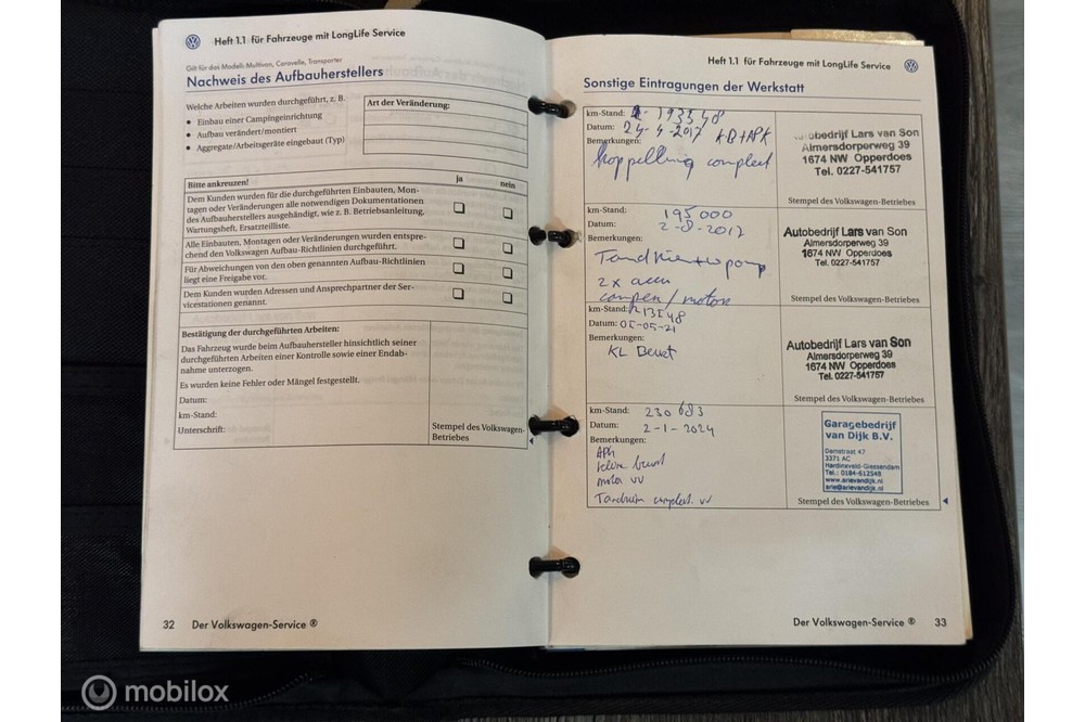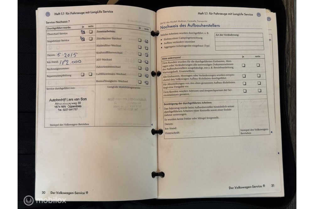 Onderhoudsboekjes: Aanwezig