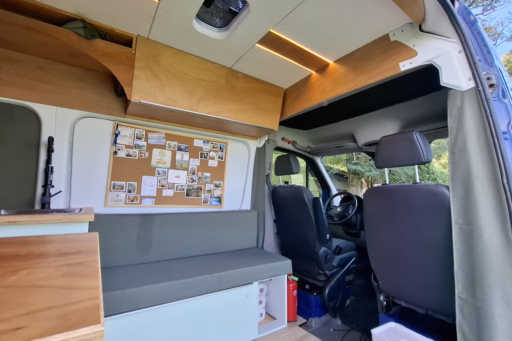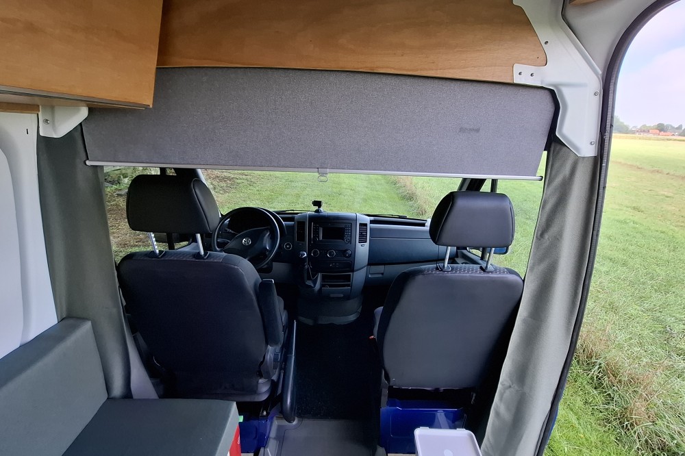 De bus is geïsoleerd met 19 mm Armaflex. De cabine is met een rolgordijn
