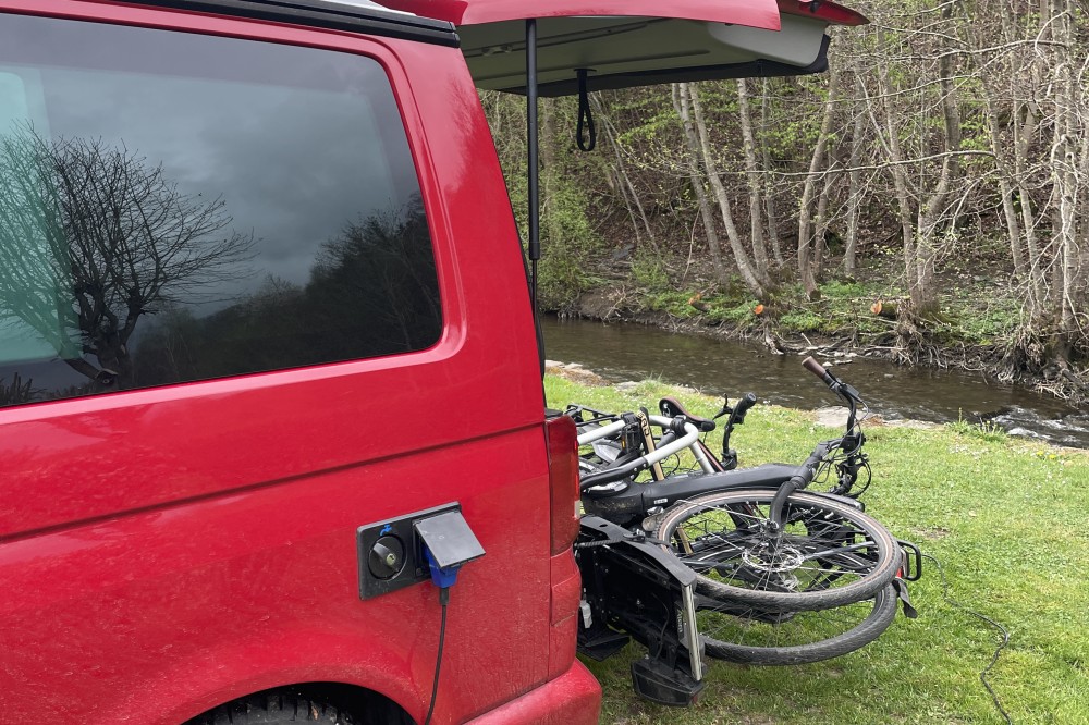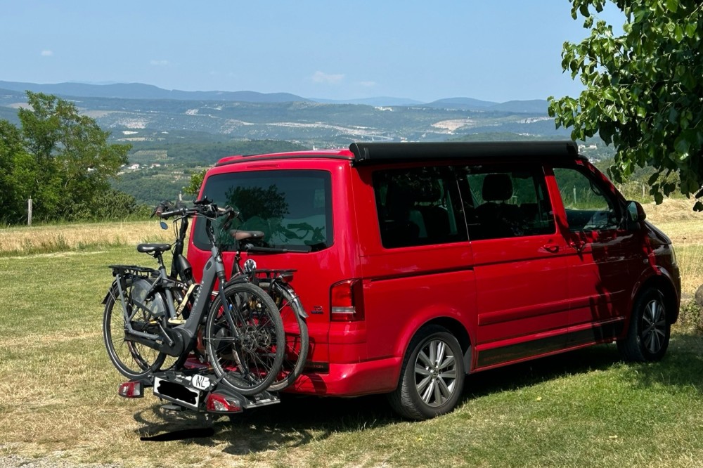 - Kantelbare fietsendrager voor 2 e-bikes (achterklep kan open blijven met fietsen erop).