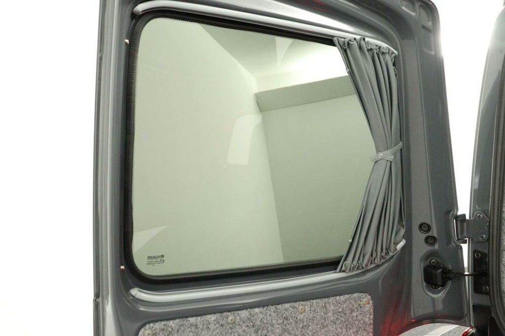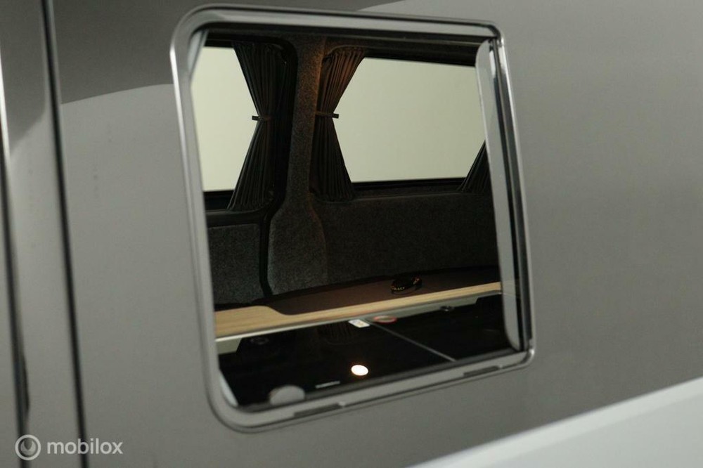 De buscamper is voorzien van een slaap-hefdak met een bedmaat van 120 x 200 cm en heeft rondom glastinting.