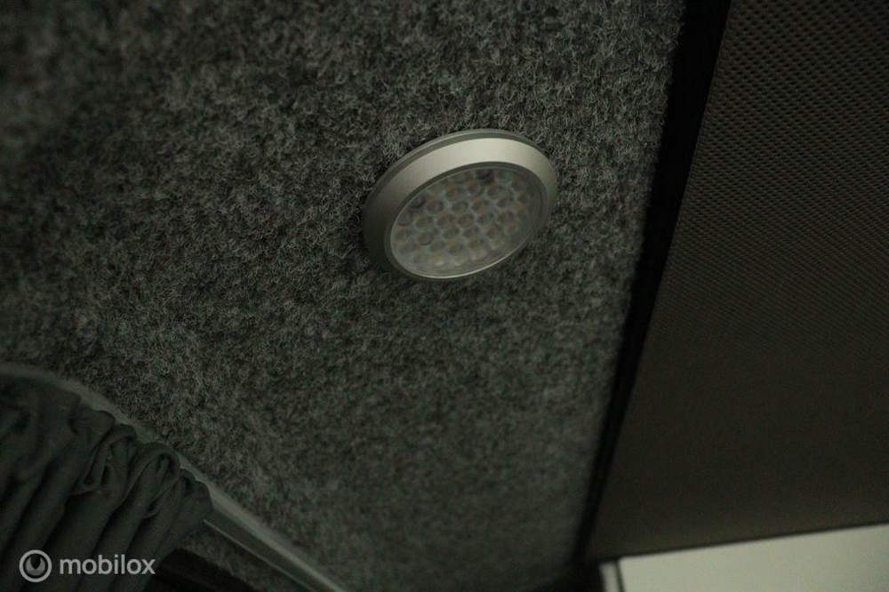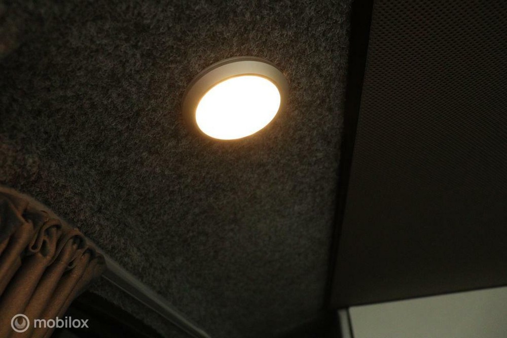 De buscamper is binnen voorzien van led lampjes.