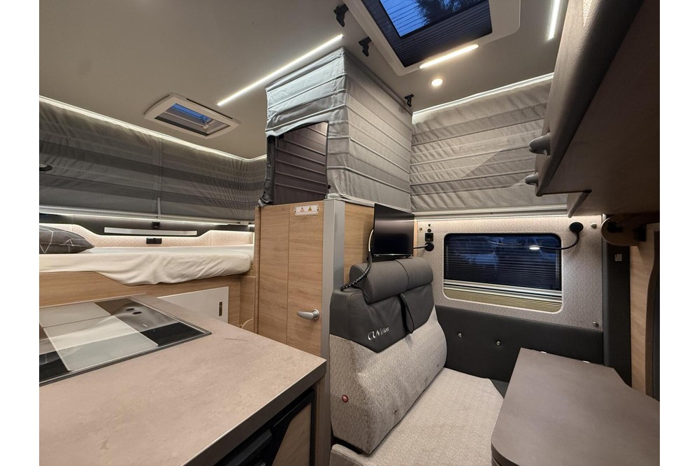 Het elektrische "Pop-up" dak maakt deze camper ontzettend dynamisch qua rijgedrag en waant u zich in een personenauto. Eenmaal op de plaats van bestemming heeft u met het pop-up dak omhoog een stahoogte van maar liefst 2m17!