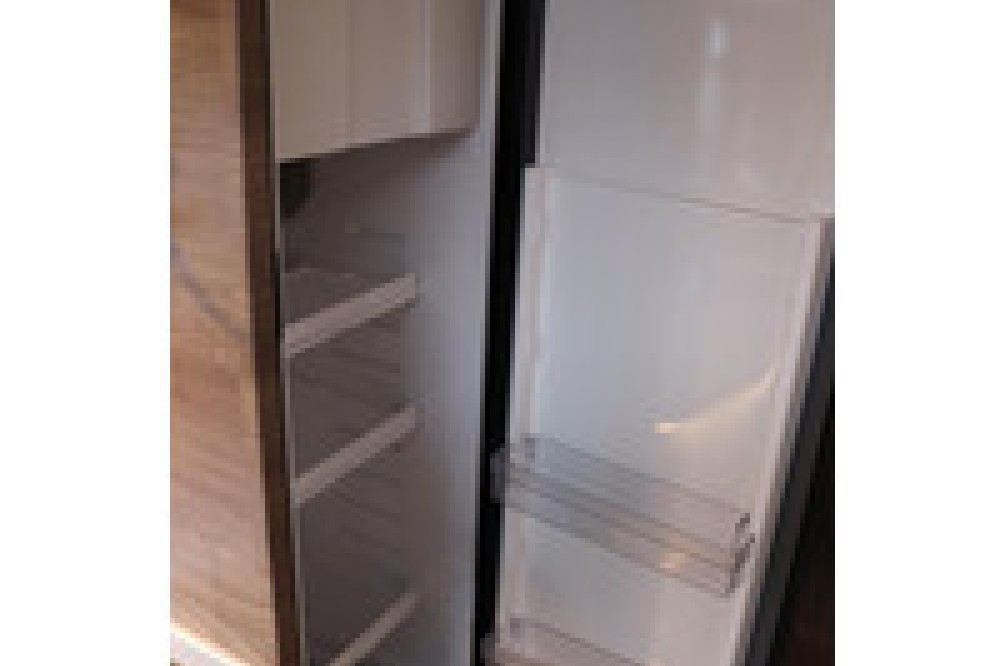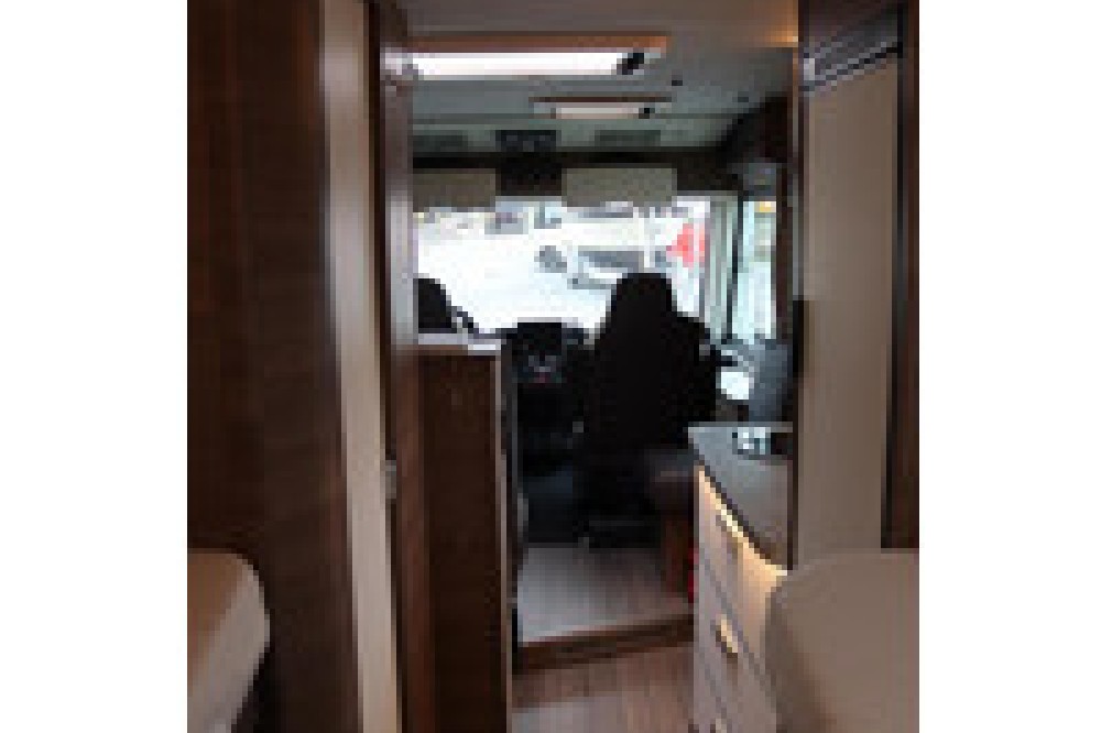 De indeling is praktisch en populair: achterin twee lage lengtebedden die eenvoudig zijn om te bouwen tot een groot tweepersoonsbed, plus een ruim hefbed voorin. De keuken is compleet uitgerust met een 3-pits kooktoestel, veel bergruimte en een grote 180 liter koelkast met aparte vriezer.