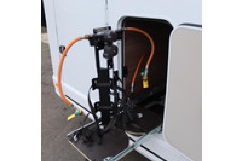 - Ruimte voor gasflessen met deur en uittrekbare slede