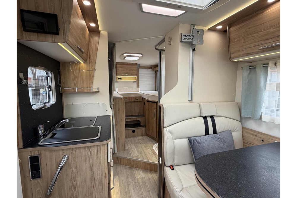 Een prachtige camper, deze Bavaria T650 GJ Style uit Juli 2019 . Deze camper verkleerd in en zeer nette staat en is goed onderhouden . Het betreft een compact camper van 6.5 meter met en zeer gewilde indeling. De camper heeft een ruime rondzit dmv draaistoelen , een Ruime keuken en mooie werkruimte met en grote koelkast met vriezer . verder is er ook en royale aparte douche/toilet ruimte aanwezig, achterin de camper bevinden zich 2 ruime enkele bedden met en zeer ruime garage daaronder . Uiteraard is deze camper van alle gemakken voorzien, zoals en Motor Airco , Zonnepaneel , Lpg , Grote garage , Panoramisch dak , Hordeur , Luifel , Achteruitrijcamera , Lift Fietsenrek , Plissé verduistering en nog veel meer.